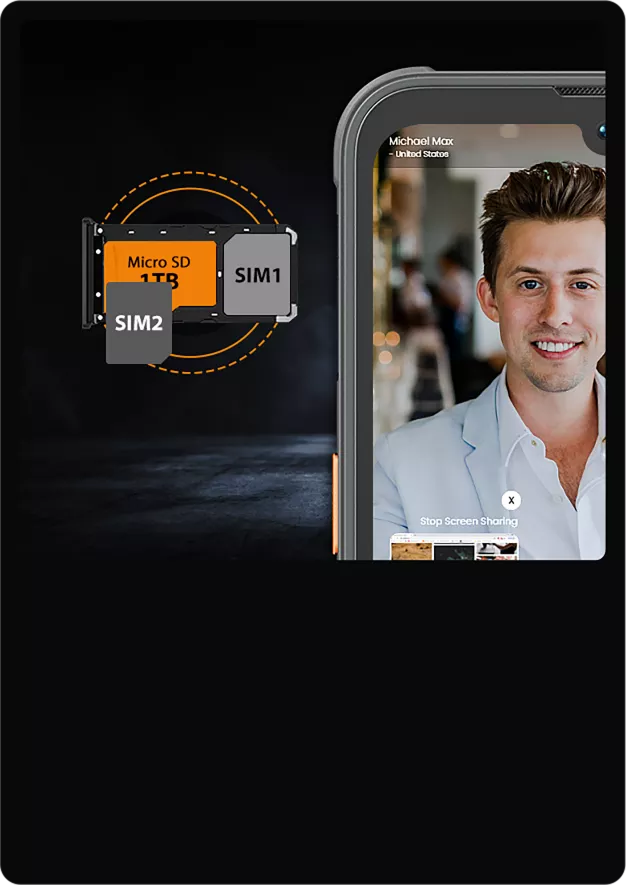 В Blackview BV5200 используется гибридный слот, позволяющий одновременно использовать 2 СИМ или СИМ + карту памяти объёмом до 1Тб.